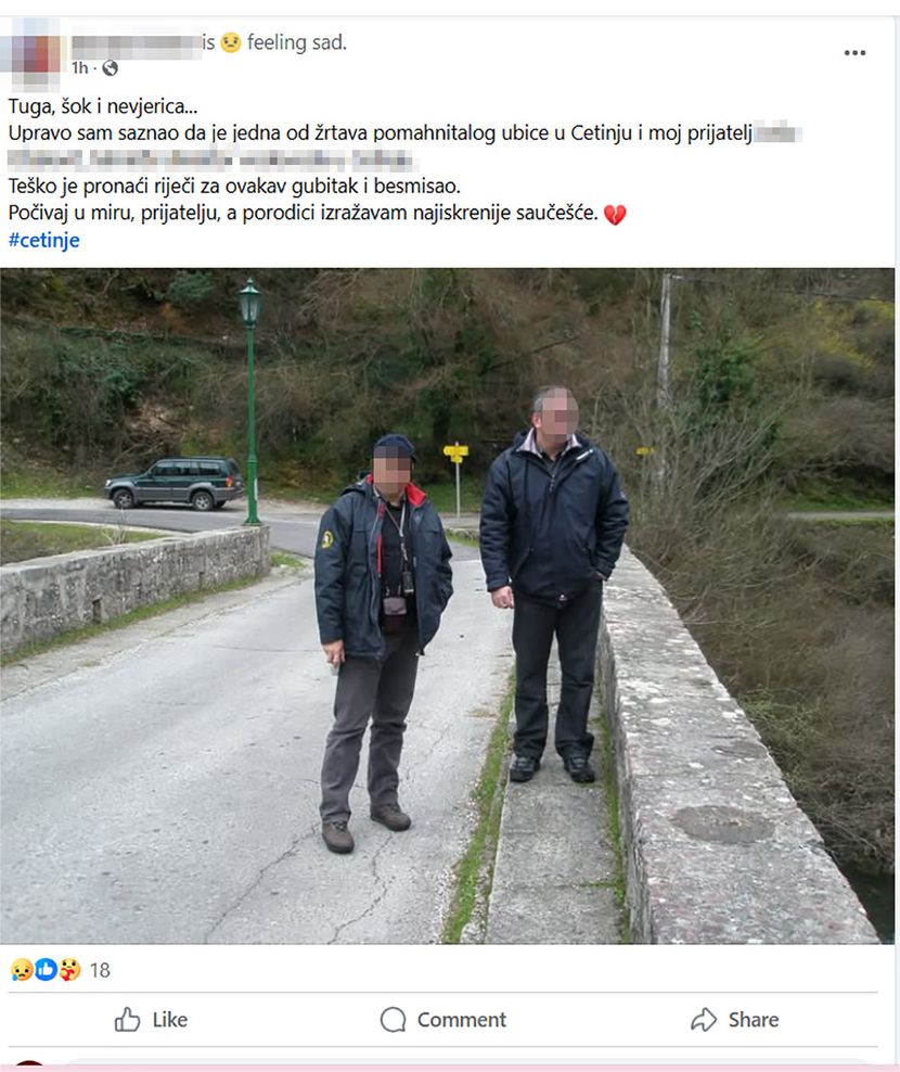 „Тага, шок и неверување. Само што дознав дека една од жртвите на лудиот убиец во Цетиње е мојот пријател Ј.О. технички директор на водовод во Цетиње. Тешко е да се најдат зборови за ваква загуба и бесмисленост. Почивај во мир пријателе и мое искрено сочувство до семејството – напиша пријател на својот Фејсбук.