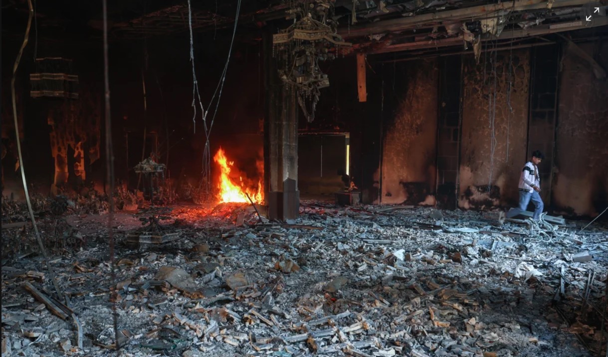 Видеото од друга палата, палатата Мухајрин во постар стил, потврдена од Ројтерс, прикажува групи мажи и жени како шетаат низ бел мермерен под и низ комплети високи дрвени врати. Еден човек носеше вазна во раката, а голем кабинет стоеше празен со подотворени врати. Лустери висеа од таванот.