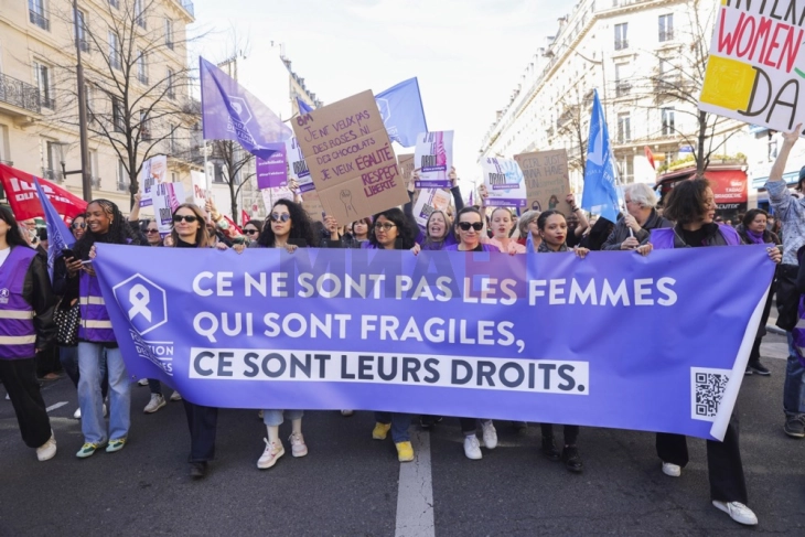 Неколку илјади луѓе се собраа денеска на демонстрации за женски права во Париз, на повик од организации и синдикати кои се борат против родова нееднаквост.