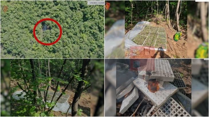 Тимови на албанската полиција опремени со беспилотни летала, кои продолжуваат со интензивни контроли на целата територија, во атарот на градот Лежа откриле повеќе од три илјади садници канабис сатива.