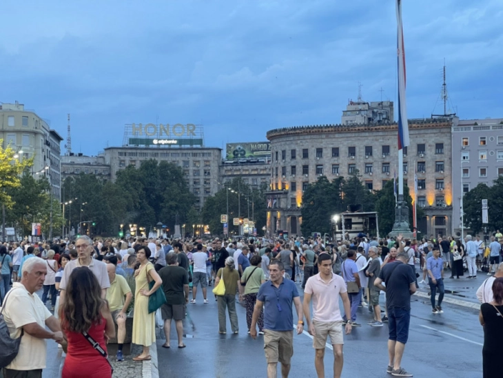 Протестот во Белград, почна од платотото пред Народното собрание, од каде граѓаните со блокада на собраќајот по централните белградски улици, се шетаа по „медиумска рута“ долж улицата Дечанска помеѓу РЕМ (Регулаторно тело за електронски медиуми) и Вечерни новости, преку Македонска улица крај Политика и Радио Белград, па се до улицата Светогорска и Таковска до Јавниот сервис РТС.