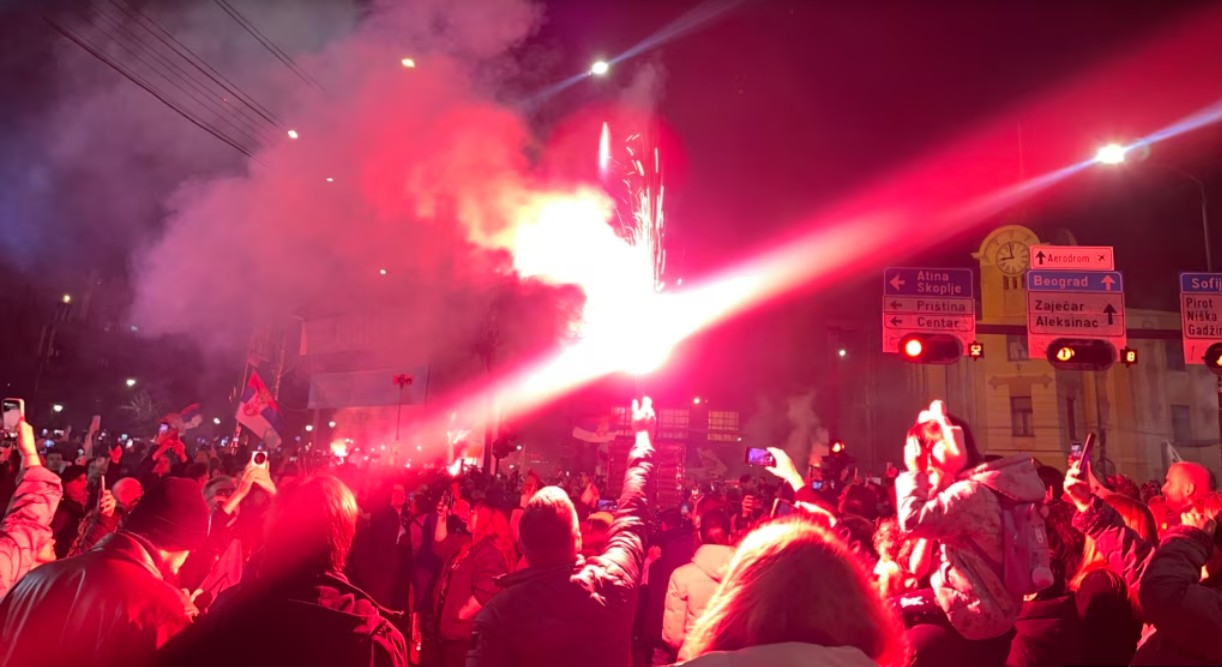 Илјадници граѓани се собраа во центарот на Ниш за да ги пречекаат студентите кои пеш пристигнаа во најголемиот град во јужна Србија за да учествуваат на протестот „Студентски едикт“ на 1 март.