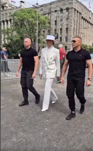 Друго појавување што остави силен впечаток истиот ден беше она на Дијана Хркаловиќ, поранешна државна секретарка на Министерството за внатрешни работи. Облечен во бел фустан и опкружен со телохранители, поранешниот висок функционер – осуден на почетокот на 2025 година за злоупотреба на влијание – дојде да ги поздрави поддржувачите на претседателскиот табор. Долго време поврзана со криминалните групи на Дарко Елез и Вељко Беливук, таа беше обвинета за попречување на неколку истраги за нивните активности пред да биде рехабилитирана од провладините медиуми, кои сега ја прикажуваат како страствен поддржувач на Александар Вучиќ.