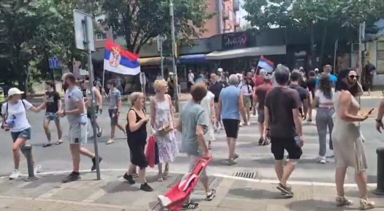 Маскирана жандармерија во Белград, демонстрантите ги блокираат сообраќајниците со методот „зебра“