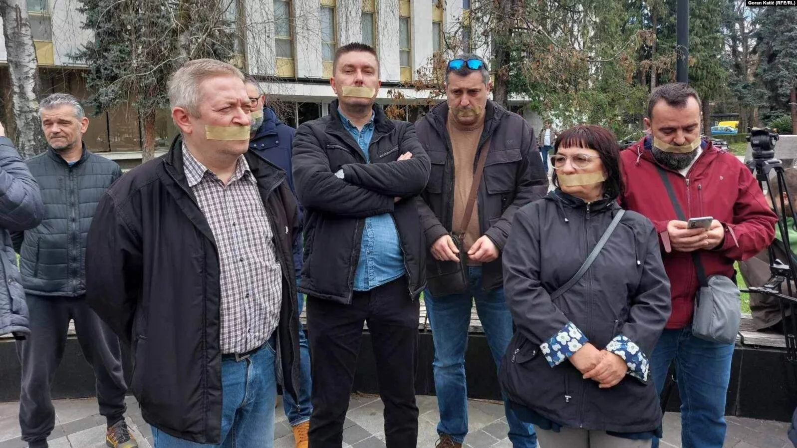 Во знак на протест тие залепија ленти преку устите и кршеа моливи и пенкала.