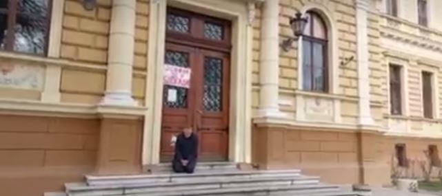 08.25h Direktor jovine gimnazije Radivoje vec sat vremena kleci od kako su ucenici gimnazije stupili u blokadu (sve ih vise) ..dosao mu i popa.. pic.twitter.com/yWt4Qw8pWn