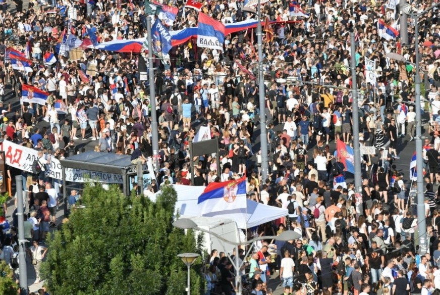 Во Белград денеска се одржува протестот под мотото „Се гледаме на Видовден“, организиран од студентското движење како дел од низата протести што траат веќе неколку месеци. Студентите и граѓаните се собираат на плоштадот Славија, изразувајќи незадоволство и барајќи одговорност од властите за трагедијата што се случи на 1 ноември минатата година во Нови Сад, кога при уривање на настрешница на новореновираната железничка станица загинаа 16 лица.