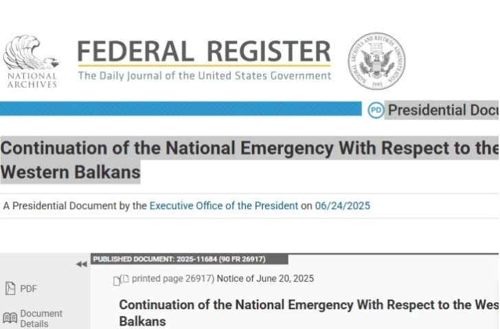 Почнувајќи од денеска, 26 јуни, САД ја продолжуваат за уште една година националната вонредна состојба во однос на Западен Балкан, која беше прогласена во 2001 година. Извршната наредба за продолжување на вонредната состојба ја потпиша од американскиот претседател Доналд Трамп, а ја објави Федералниот регистер на САД. Во документот се наведува дека националната безбедност и … Продолжи со читање САД ја продолжија вонредната состојба на Западен Балкан на уште една година