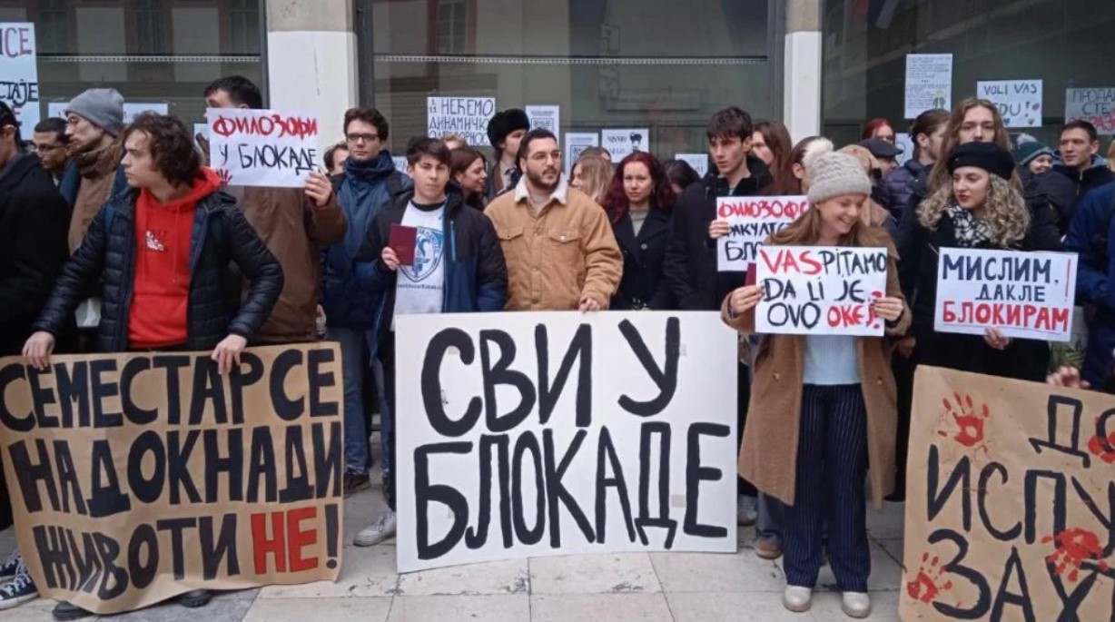 „Влеговме во блокадите затоа што има многу поважна лекција, многу поважен испит од оние кои не чекаат на час – испит за морал, совест и солидарност. Факултетите се нашите домови, нашите упоришта на знаење и безбедни места. Овде се чувствуваме безбедно, за разлика од улицата. Ние одбиваме само да продолжиме понатаму; полни индекси не ни вредат ако несреќи како оваа во Нови Сад се случуваат токму така и ако безбедноста на нашите колеги е загрозена кога тие се бунтуваат поради тоа. Сакаме да ја заштитиме автономијата на високото образование“, рече студентката која не го кажа своето име и презиме, но рече дека тоа е нејзиното име да се биде студент.
