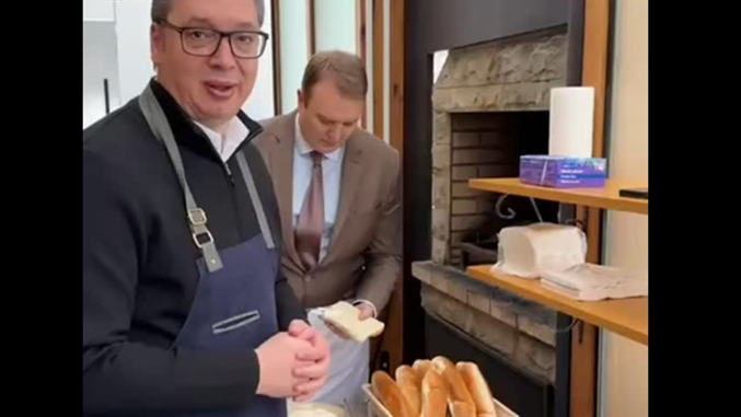 Претседателот на Србија, Александар Вучиќ, најави голем собир во Сремска Митровица на многу необичен начин – подготвувајќи сендвичи. Во видеото, Вучиќ изјави: