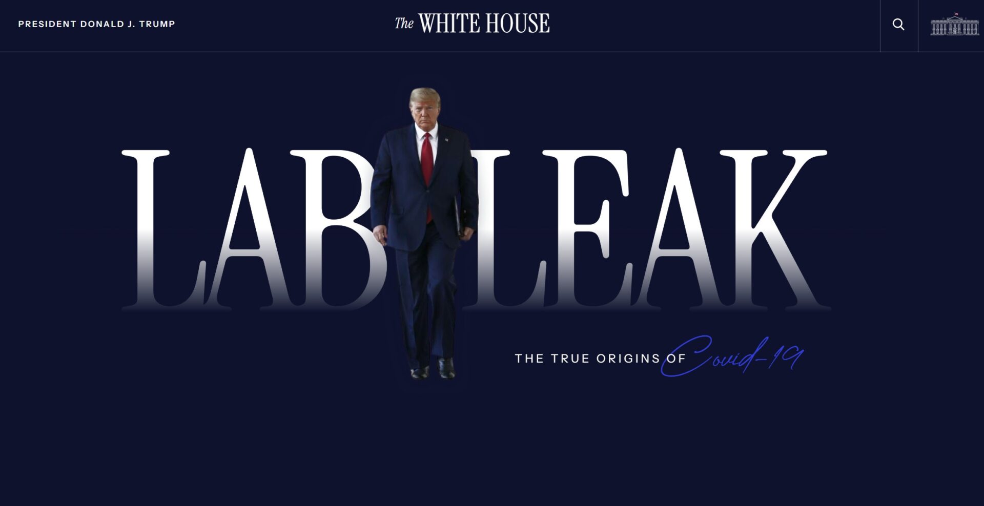 Белата куќа на републиканскиот претседател на САД, Доналд Трамп, во петокот отвори веб-страница за КОВИД-19 на која го обвини потеклото на коронавирусот на истекување од лабораторија во Кина, истовремено критикувајќи ги поранешниот демократски претседател Џо Бајден, поранешниот висок американски здравствен функционер Ентони Фаучи и Светската здравствена организација.
