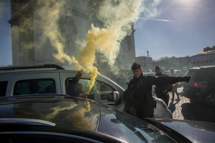 Вчера беше деветти ден од протестите против пензиските реформи во француските градови. Во главниот град на Франција, хулигани ја нападнаа полицијата со шишиња, камења и бомби, а тие одговорија со солзавец. Според претставници на органите на редот, меѓу демонстрантите имало 1.500 хулигани, од кои многумина специјално пристигнале тој ден од париските предградија.