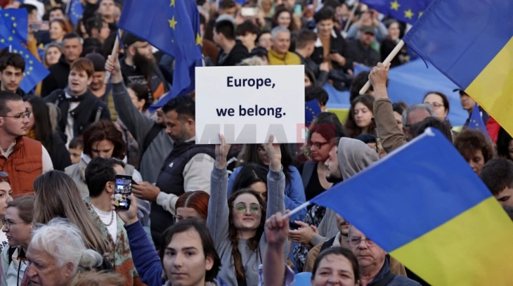 Во центарот на романската престолнина, толпата мавташе со знамиња на ЕУ и извикуваше слогани како „Романија гласа, Европа брои“ и „Русија нè загрозува – ЕУ нè штити“, според локалните медиуми.
