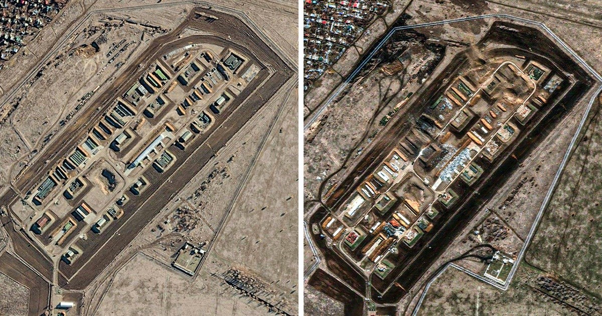 Утринава се направени нови сателитски снимки од руската воздухопловна база Енгелс, која вчера беше погодена од украински беспилотни летала, на кои се гледаат кратери и уништени згради. Снимката покажува споредба на денешната ситуација со онаа од декември 2024 година.