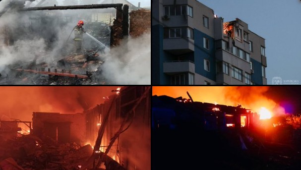 Итните служби информираа дека нападот бил изведен со дронови и балистички ракети, при што биле погодени повеќе делови на градот, а на неколку локации избија пожари.