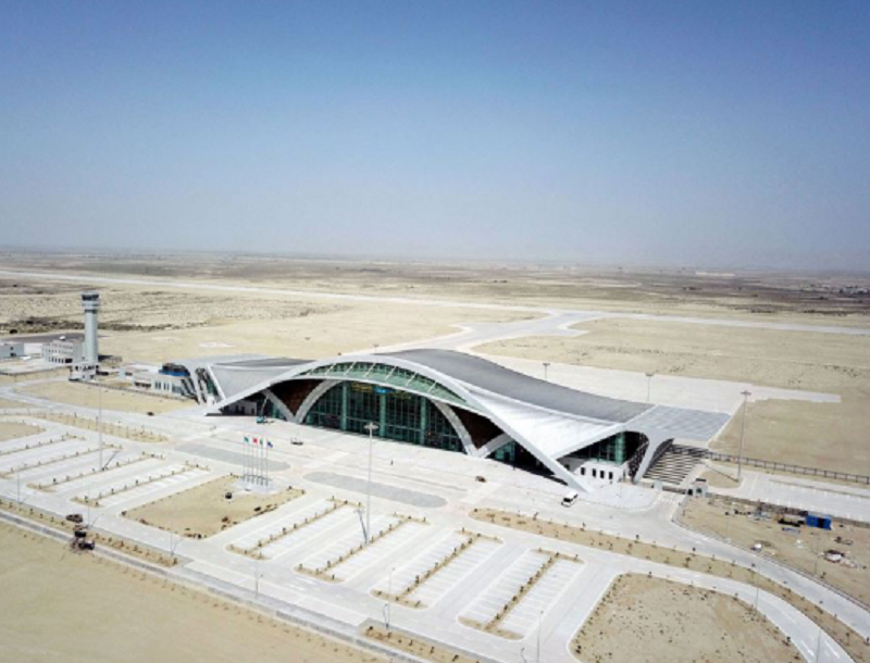 Безбедносни причини го одложија отворањето на меѓународниот аеродром, бидејќи планинските области околу него беа препознаени како потенцијални точки за напади. Наместо свечена церемонија, пакистанскиот премиер Шахбаз Шариф и неговиот кинески колега Ли Кианг организираа виртуелно отворање. Првиот лет од аеродромот беше затворен за медиумите и јавноста.
