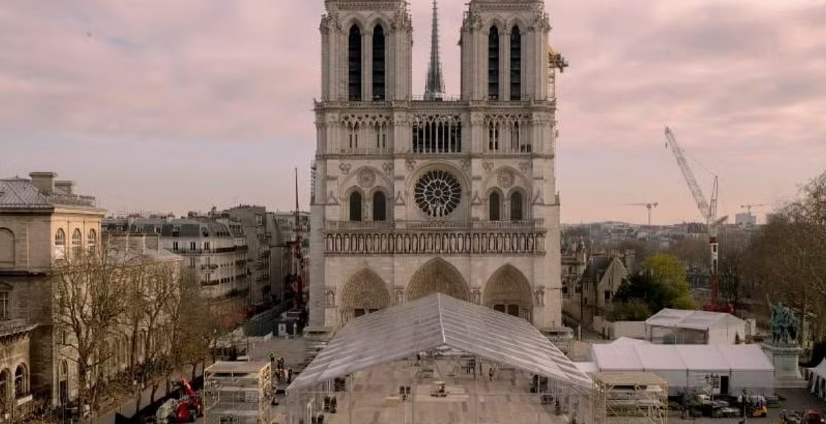 Поздравувајќи го реновирањето, кое чинеше најмалку 600 милиони фунти, Макрон шеташе низ Нотр Дам со неговата сопруга Брижит Макрон денеска и рече: „Кошмарот заврши“.