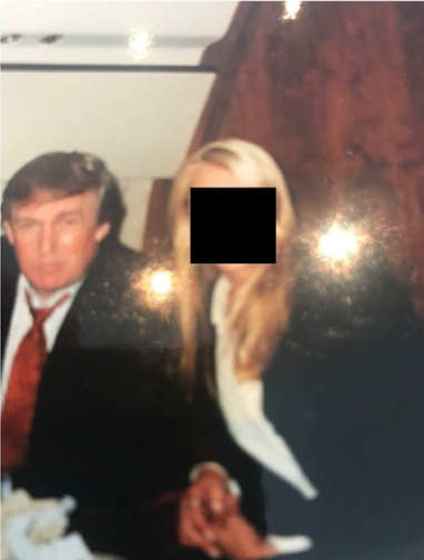 Истовремено, меѓу објавените материјали се и три фотографии на кои се гледа Доналд Трамп,на една е опкружен со група жени со заматени лица, на друга стои покрај Епстајн, а на третата е снимен со уште една жена. Забележливо е и присуство на пакувања со натпис „Trump Condom“ со илустрација од Трамп.