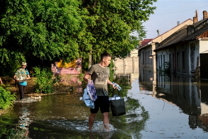 Украинските власти синоќа соопштија дека во тек е евакуација на „повеќе од 17.000“ цивили од поплавените подрачја околу браната Каховка кон југ.