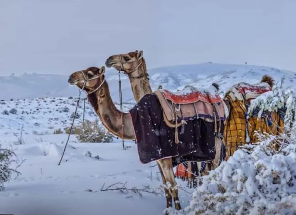 Пустинските и планинските предели на Саудиска Арабија се покриени со снежна покривка, откако студен бран и обилни врнежи донесоа снег во неколку региони, претворајќи ги планините опкружени со пустина во вистинска зимска глетка. Снежни врнежи се забележани и во делови од некои градови, пренесува РТС.