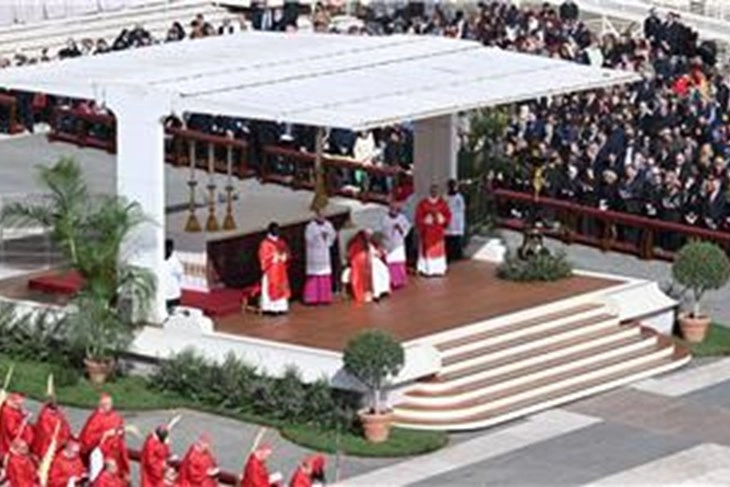 Папата Франциск денеска присуствуваше на мисата за празникот Цветници на плоштадот Св. Петар, само еден ден откако беше отпуштен од болница по успешното закрепнување од инфективен бронхитис, јави Хина.