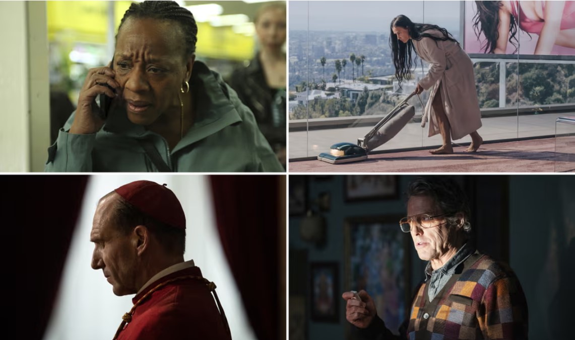 Хју Грант – кој последен пат победи во 1995 година за „Четири венчавки и погреб“ – беше вклучен во потесниот круг за најдобар актер за неговиот придонес во хорор филмот „Еретик“, како што беше и Себастијан Стен за неговиот портрет на Доналд Трамп во „Приправник“. Ним им се придружуваат Колман Доминго за затворската драма „Пеј пеј“, која е во трка за три награди.