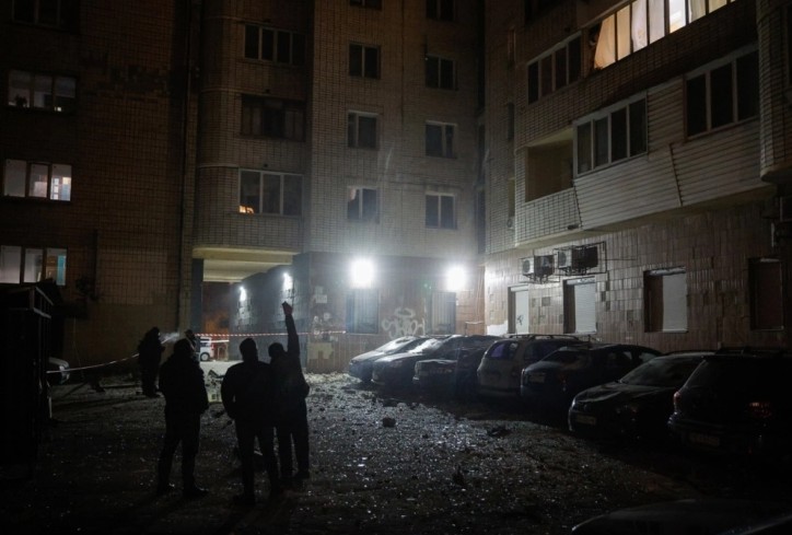 Тимур Ткаченко, началник на воената администрација на Киев, соопшти дека на повеќе локации избувнале пожари, а има и штети од паднати делови од беспилотни летала.