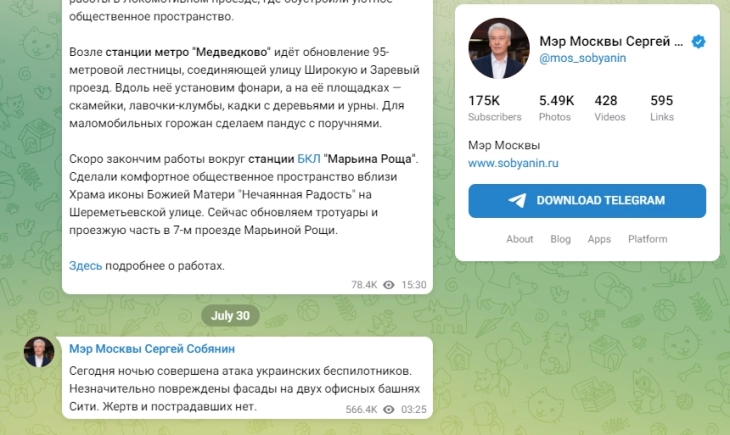 Украински дронови ноќеска ја нападнаа Москва, но нема жртви, изјави градоначалникот нас рускиот главен град Сергеј Собјанин.