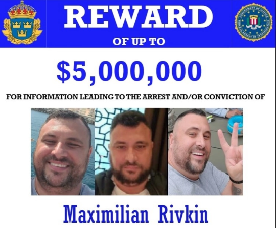 САД распишаа потерница од пет милиони долари за каква и да било информација што ќе води кон апсење на Максимилијан Ривкин, шведски меѓународен криминалец со српско потекло, соопштија синоќа од Стејт департментот.