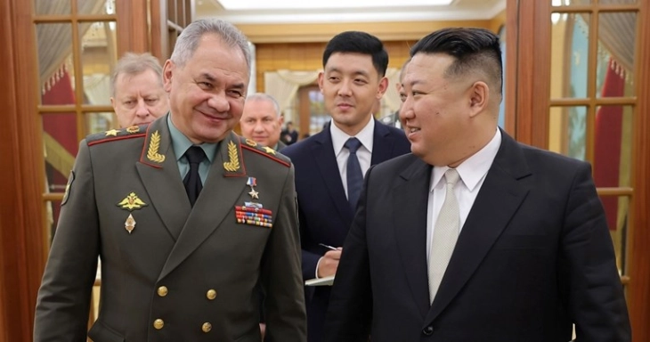 Рускиот министер за одбрана Сергеј Шојгу му се придружи на севернокорејскиот лидер Ким Џонг-ун во обиколката на воена изложба на која се изложени забранети балистички проектили, објавија денеска севернокорејските државни медиуми, додавајќи дека двете страни ветиле дека ќе ги зајакнат односите.