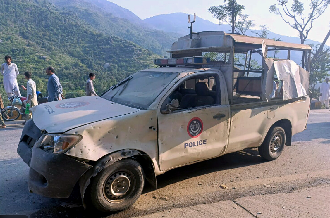 Најмалку петмина полицајци се убиени во терористички напад врз нивното службено возило во северозападната пакистанска покраина Кајбер Пахтунхва, соопштија локалните власти.
