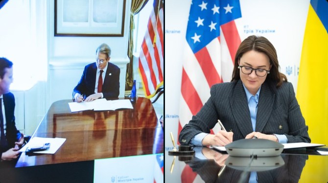 We are happy to announce the signing, with our American partners, of a Memorandum of Intent, which paves the way for an Economic Partnership Agreement and the establishment of the Investment Fund for the Reconstruction of Ukraine. pic.twitter.com/AQsHPkWh5X