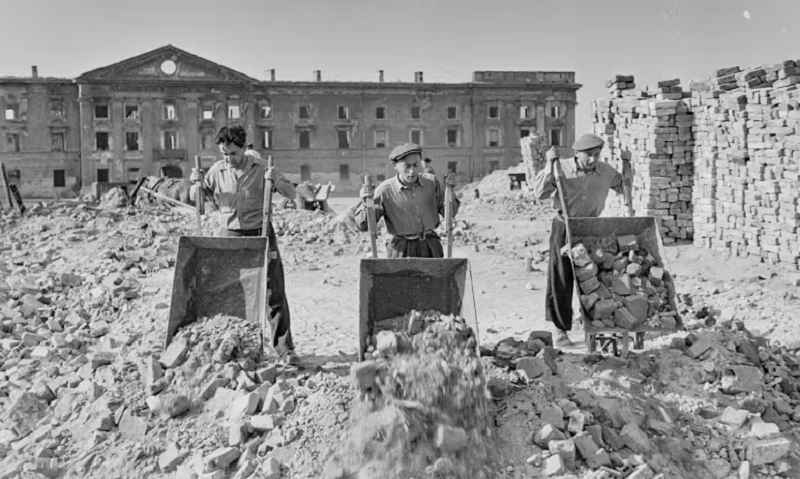Многу европски градови мораа целосно да се обноват по Втората светска војна. Во Германија, Trümmerfrauen, или „жените од урнатините“, фотографирани како работат на расчистување на урнатините, станаа речиси митски фигури на повоените години.