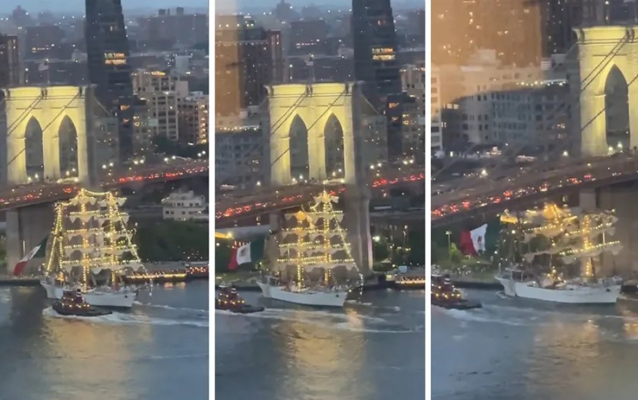Драматични снимки се појавија на X Network (порано Twitter) на кои се гледа моментот кога мексикански брод за обука се судира со Бруклинскиот мост во Њујорк.