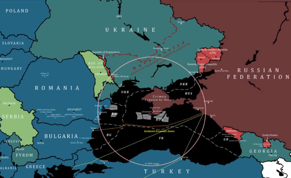 Истo така, како стратешка точка, главната руска поморска база се наоѓа во Севастопол на Крим, но доколку не се случеше анексијата на полуостровот, и ако Украина после Мајдан ја задржаше контролата врз целата земја, денес Русија во областа на Црно Море, ќе го контролираше само источниот дел.
