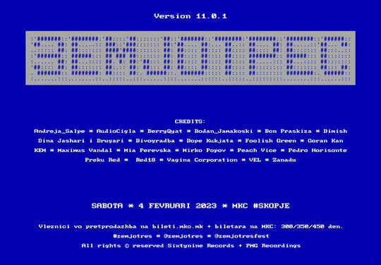Земјотрес започнува во 19:00 часот и ќе трае сѐ до 04:00 часот. Првите сто влезници беа по цена од 300 денари, моменталната цена во претпродажба на bileti.mkc.mk изнесува 400 денари, а на денот на настанот ќе изнесуваат 450 денари и ќе можат да се Влезници во претпродажба и на набават на билетарата на МКЦ.