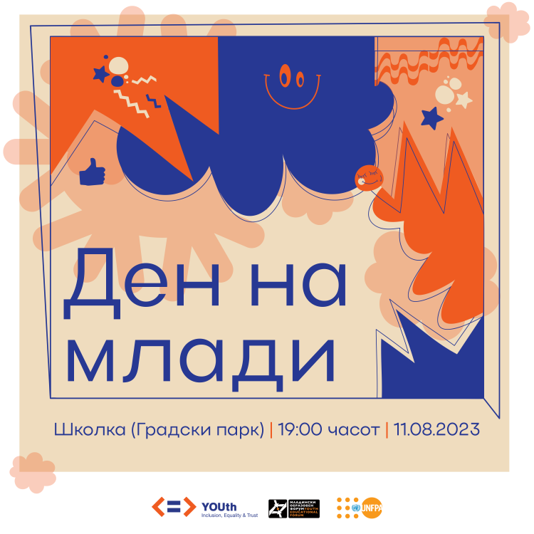 Канцеларијата на Фондот за население на Обединетите нации – УНФПА во Скопје и Младински образовен форум – МОФ, во партнерство со Агенцијата за млади и спорт – АМС, Програмата за развој на Обединети нации – УНДП, Мисијата на ОБСЕ во Скопје и Активноста на УСАИД за млади кои активно создаваат можности, ќе го одбележат Меѓународниот ден на младите со настанот што ќе се одржи на 11 август 2023 година во Скопје, во Градскиот парк – Школка, со почеток во 19:00 часот.