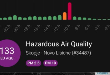 Вечерва (четврток 10 септември) мониторските станици за квалитетот на возудух на AirQuality кои го набљудуваат квалитетот на воздухот во Скопје, покажуваат алармантни вредности на PM 2.5 и PM 10 честички во воздухот, кои важат за најканцерогени и предизвикуваат сериозни здравствени проблеми кај сите демографски популации. Препораките на ЕУ и на СЗО при вакви услови инсистираат … Продолжи со читање Аеродром и Ново Лисиче вечерва се гушат во канцерогени честички