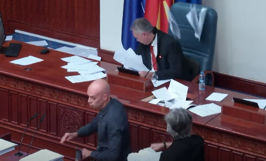 Левица демолираше државен инвентар, имот на народот на Северна Македонија и направија голема материјална штета со оштетување на инвентар и опрема со крешење монитори и микрофони во законодавниот дом.