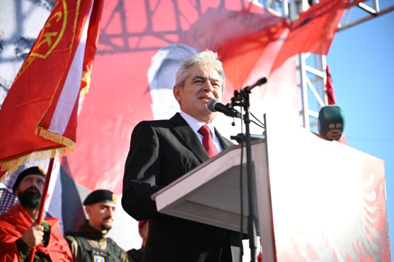Протестот на ДУИ во центарот на Скопје, организиран во поддршка на поранешните водачи на Ослободителната војска на Косово кои се соочуваат со судски процес во Хаг, доби силна меѓународна димензија со пораката на лидерот Али Ахмети, упатена директно до Западот. Од бината на плоштадот „Скендербег“, пред масата униформирани лица, поранешни припадници и поддржувачи на УЧК, … Продолжи со читање Ахмети од протестот „Јас сум УЧК“: Америка, НАТО, Европа – ви благодариме за поддршката на УЧК