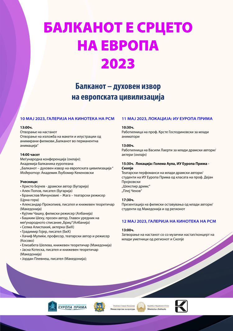 Со изложбата на макети и илустрации од анимирани филмови под наслов „Балканот во перманентна анимација“, во галеријата на Кинотека на РСМ, на 10 мај од 13:00 часот ќе отпочне годишниот настан: “Балканот е срцето на Европа 2023 – Балканот духовен извор на европската цивилизација“.