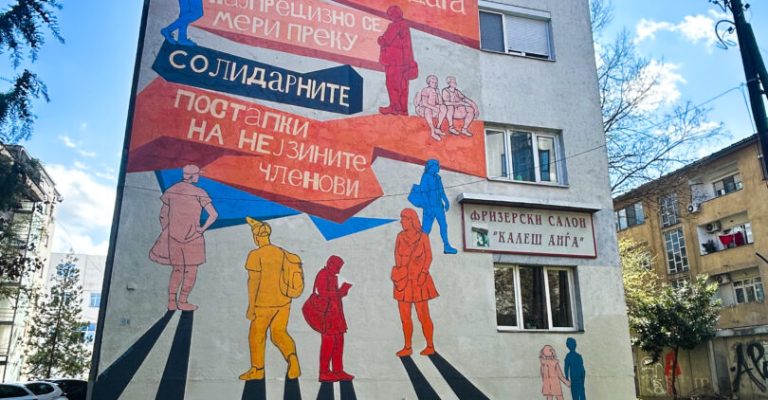 Првиот мурал, кој е веќе завршен, се наоѓа во Скопје на зградата бр.33, на бул. Митрополит Теодосиј Гологанов, наспроти студентскиот дом „Кузман Јосифовски Питу“  и ќе биде отворен во четврток на 28 март. На него работеа уметниците Ивана Самандова, Ана Трајковска и Доротеј Нешовски.