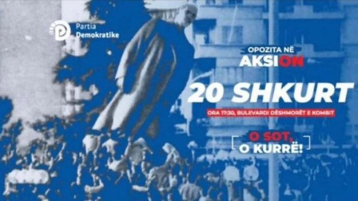 Под слоганот „Или денеска, или никогаш“, објавен од пратеникот Газмент Барди, побројното крило на опозициската Демократска партија (ДП) ќе одржи протест на плоштадот „Народни херои“ во Тирана.