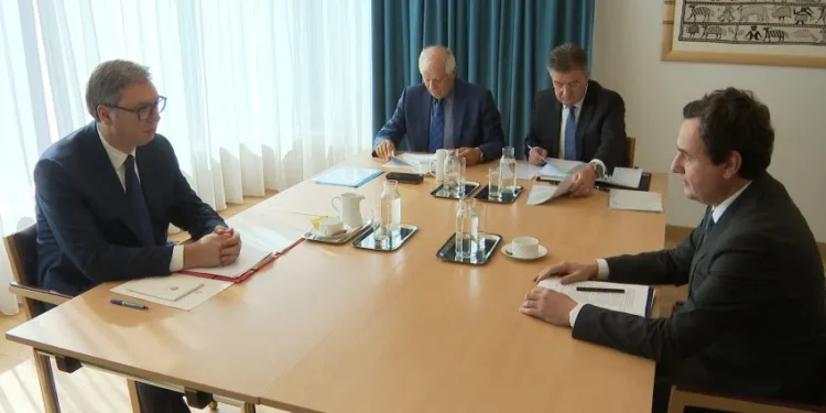 На вчерашната средба на косовскиот премиер Курти и српскиот претседател Вучиќ во Брисел, на која посредник беше Жозеп Борел, не се постигна напредок во дијалогот. Курти бара признавање на Косово од страна на Србија, за веднаш потоа, без задршки, да почнат со реализирање на договорот во кој меѓу другото, се бара формирање Заедници со српско мнозинство. Жозеп Борел повика на итни избори на северот на Косово, за да се превенираат евентуални кризи.