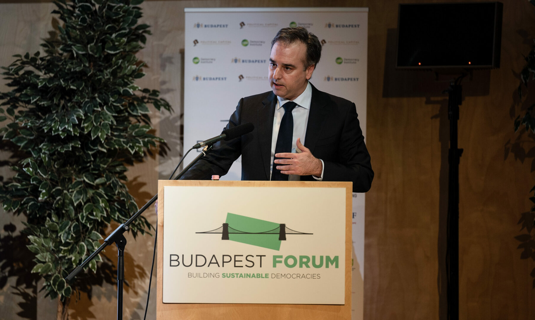 „Политиката на САД ја прифаќаше идејата дека Унгарија вели едно, а прави друго. И сега гледаме дека двете – кажувањето и делувањето – сѐ повеќе и загрижувачки се спојуваат. Унгарските билборди, наслови и зборови повеќе не се – ако некогаш биле – само зборови, политичка реторика, комуникациски трикови. Тие се продолжена рака на државната власт. Тие имаат влијание, цел, цел. Накратко, тие се политика, и влијаат на нашата Алијанса и го заслужуваат нашето внимание“, истакна амбасадорот на САД во Будимпешта на Форумот за демократија.