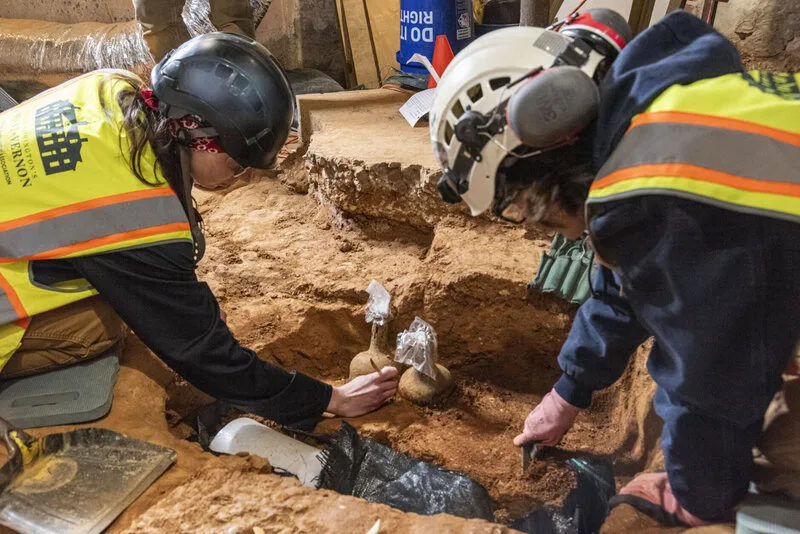 „Некаде помеѓу 1758 и 1776 година, некој ископал мала правоаголна јама – веројатно поробена личност – во оваа просторија, во визбата. Овие шишиња беа ставени таму и почвата беше вратена“, рече Бароуз.