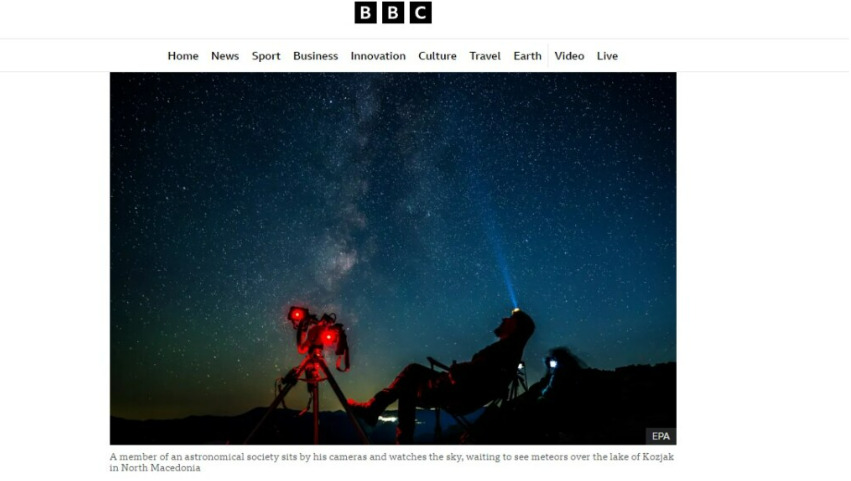 Познатиот Би-Би-Си објави фотографија од Македонија за време на метеорскиот дожд. Фотографијата е над езерото Козјак.