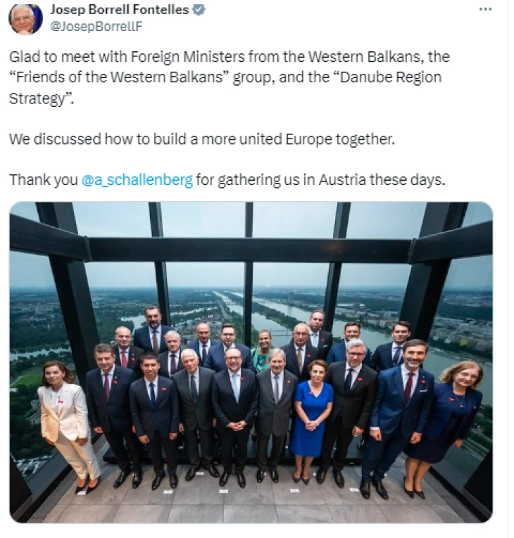 „Драго ми е што се сретнав со министрите за надворешни работи од Западен Балкан, групата „Пријатели на Западен Балкан“ и Стратегијата на ЕУ за регионот Дунав. Разговаравме како заедно да изградиме уште пообединета Европа“, објави тој на Х.