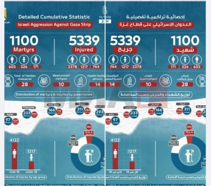 Во објавата на Фејсбук, Министерството наведува и дека вкупниот број на повредени сега изнесува 5.339. ј