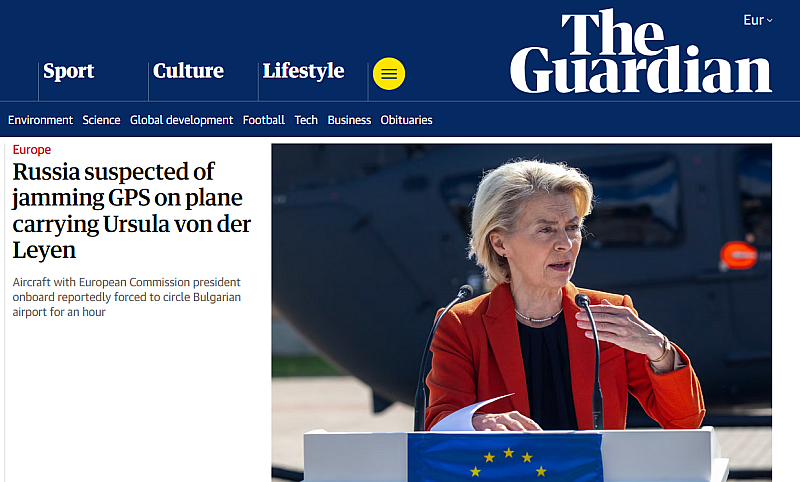 Ројтерс објави дека GPS навигацијата на авионот во кој се наоѓаше претседателката на Европската комисија Урсула фон дер Лајен е избришана над Бугарија, а властите се сомневаат во „отворено мешање“ од страна на Русија. Авионот слета безбедно користејќи хартиени мапи и системи за навигација на земја.